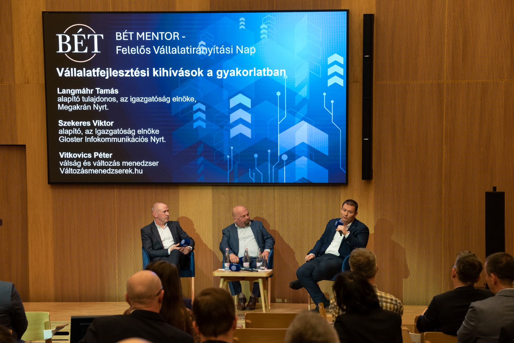 Az új BÉT Mentor program a "Felelős vállalatirányítás" című képzési nappal vette kezdetét. Az eseményt Nagy Péter Gábor, a BÉT igazgatója nyitotta meg, bemutatva a BÉT Mentor szolgáltatást. Szot Márton, a Concorde MB Partners partnere a vállalatirányítási kérdések gyakorlati jelentőségét, dr. Dobrocsi László, a BÉT igazgató-helyettese pedig a cégalapítástól a tőzsdére lépésig szükséges szervezeti változásokat mutatta be. Ezt követően Vitkovics Péter, a Változásmenedzserek.hu alapítója tartott előadást a sikeres vállalatfejlesztés összetevőiről, majd a Gloster életútját ismertették a társaság vezetői, Szekeres Viktor és Oszlánszki Péter. A záró panelbeszélgetés, "Vállalatfejlesztési kihívások a gyakorlatban" címmel a Gloster mellett a Megakránt is felvonultatta, amelynek képviseletében Langmáhr Tamás, a társaság alapító tulajdonosa és igazgatóságának elnöke osztotta meg tapasztalatait.
