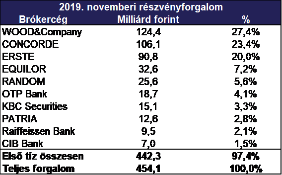 A 11,4 milliárd forintos novemberi napi átlagos forgalom felülmúlta a megelőző hónap kerek 10 milliárd forintos egy napra jutó kereskedési értékét, de a bázis 17,4 milliárd forintos értékét nem tudta megközelíteni.