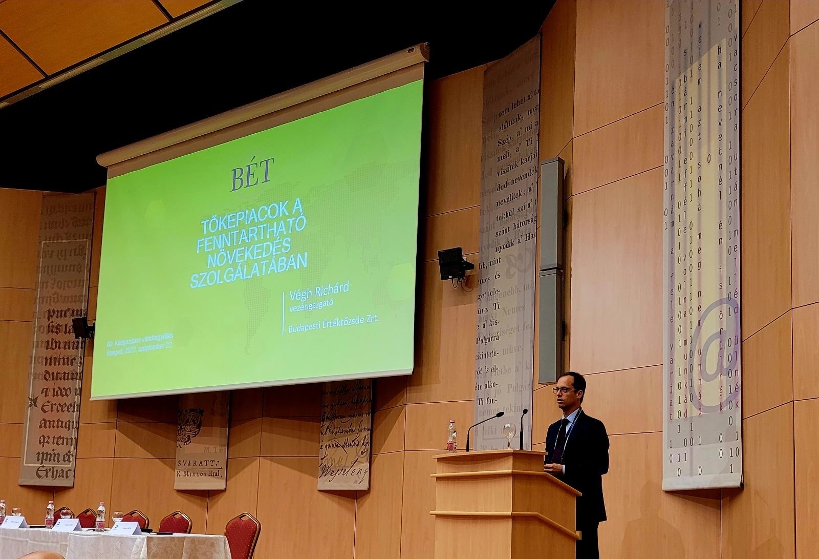 A konferencián ezúttal is hangsúlyosan megjelent a Budapesti Értéktőzsde – a fenntartható finanszírozásról szóló szekcióban dr. Kandrács Csaba, a Magyar Nemzeti Bank alelnöke és Dobos Balázs, a Kulturális és Innovációs Minisztérium vállalkozásfejlesztésért felelős helyettes államtitkára mellett Végh Richárd, a Budapesti Értéktőzsde vezérigazgatója is előadást tartott, amelyben többek között az ESG-szemlélet térnyerésének mozgatórugóira, a szabályozási környezet változásaira és a tőzsdék, azon belül is a Budapesti Értéktőzsde szerepvállalására is kitért.