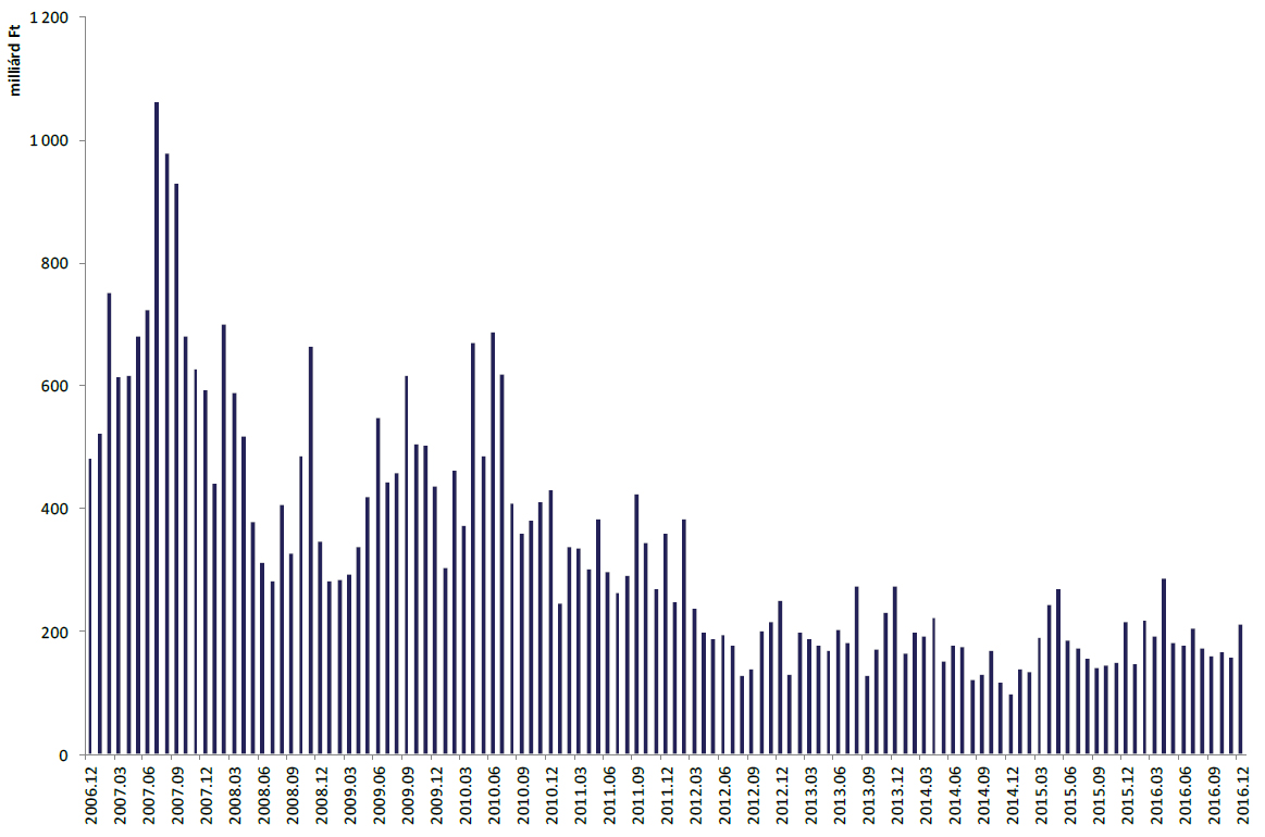 Az év utolsó hónapjában 178 milliárd forint értékben kötöttek üzleteket a befektetők a Budapesti Értéktőzsde (BÉT) részvénypiacán. Ez elmarad ugyan a novemberi, közel 210 milliárd forintos forgalomtól, azonban jelentős növekedést mutat a 2015-ös év azonos időszakához képest (147 milliárd forint). A napi átlagforgalom alakulása hasonló tendenciát mutat: decemberben a 21 kereskedési napon átlagosan 8,5 milliárd forint értékben kötöttek üzletet a BÉT azonnali piacán, ami kevesebb ugyan a novemberinél (10 milliárd forint), de számottevően meghaladja a 2015. decemberi 7,3 milliárd forintos értéket.